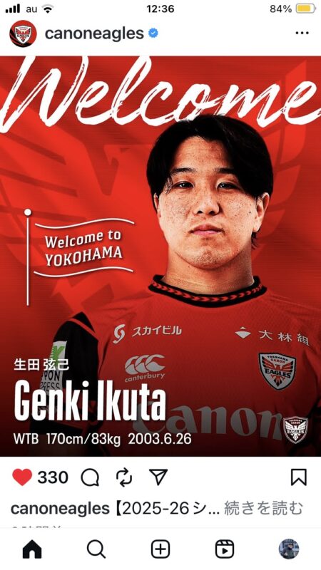 今度は我がキヤノンイーグルスに入団決定!