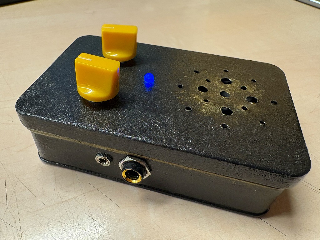 ブリキなどの 小さなケースに ・スピーカー ・電源(電池) ・スイッチ ・ボリューム