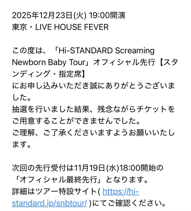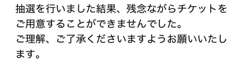 ってことでチケットを応募し、ドキドキしながら抽選結果発表の日を待って