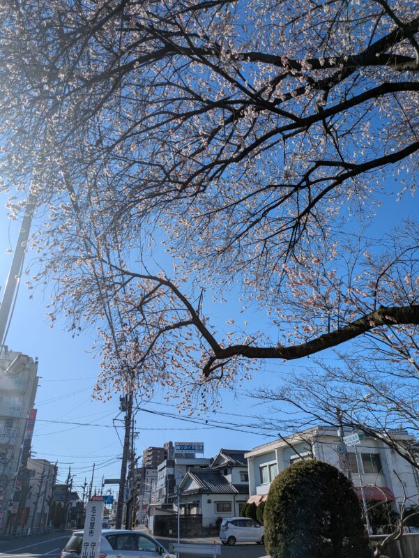 毎年名古屋に行くと忘れてて驚かされるんですが、交差点にぽつりと咲いているんです。品種はわからず、疑ってしまうのですが、住んでる方曰く、桜だそうです。年始の寒い時を想像してみてください、不思議ですよね~